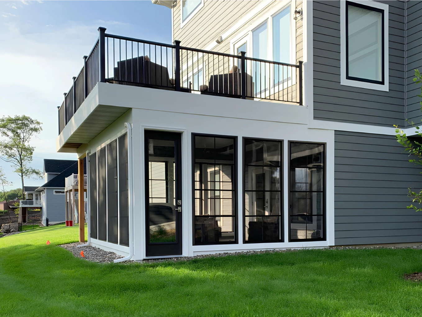 Absolutely. Covered porches are frequently designed as part of a larger outdoor living space that includes an adjacent deck or patio. Our team plans every connection point carefully to ensure the full outdoor structure works together cohesively and performs as a unified system.